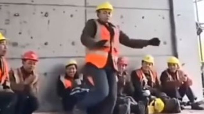 Çin'de bir inşaatta çalışan bir işçi, molada muhteşem bir dans gösterisi sergiledi.