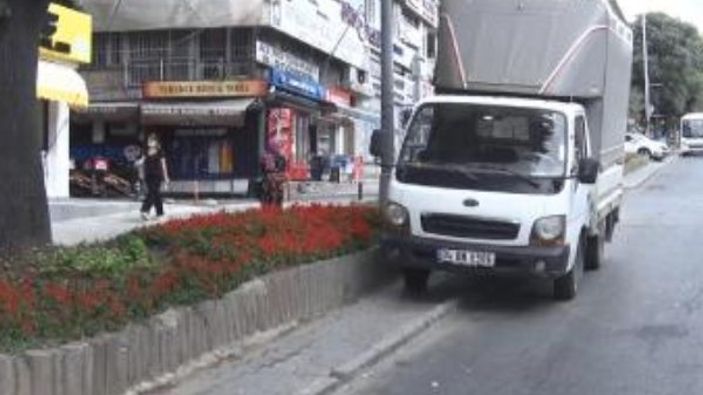 Bazı sürücüler araçlarını yasak olmasına rağmen kaldırımlara park ederken, çok sayıda motosikletli kurye de vatandaşların yürüdüğü kaldırımlarda ilerliyor.