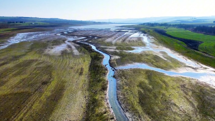 Doluluk oranı yüzde 35,62 olan Sazlıdere Barajı ise havadan görüntülendi.