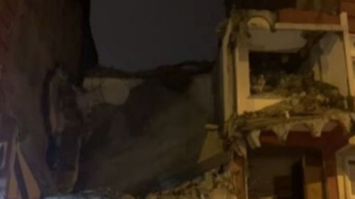 İstanbul'da kentsel dönüşüm aşamasındaki binanın bir kısmı fırtınada yıkıldı