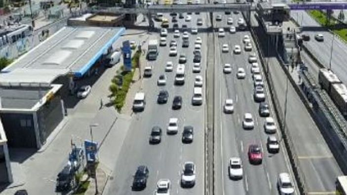 Trafik yoğunluğu artmaya devam ederken, kısa sürede oluşan yoğunluk havadan da görüntülendi.