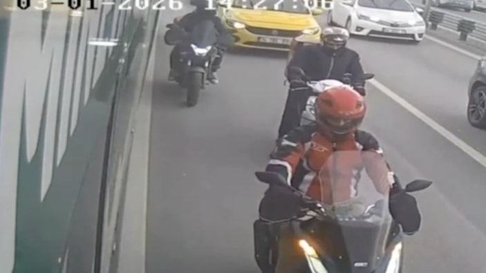 İstanbul'da şiddetli lodos nedeniyle zor anlar yaşayan motosiklet sürücülerine metrobüs şoförü kalkan oldu. Köprü üzerinden geçen metrobüsün motosikletlilere yardım eli uzattığı o anlar kameralara saniye saniye yansıdı.