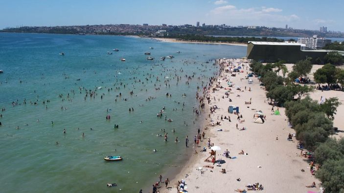 Menekşe Plajı'ndaki kalabalık havadan görüntülendi.
