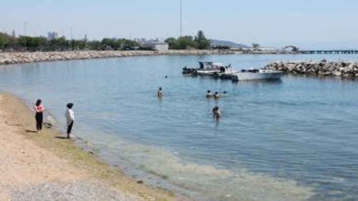 Kentte sıcak havadan bunalan vatandaşlar, deniz sefası yaptı. Denize giren vatandaşlar havadan görüntülendi.