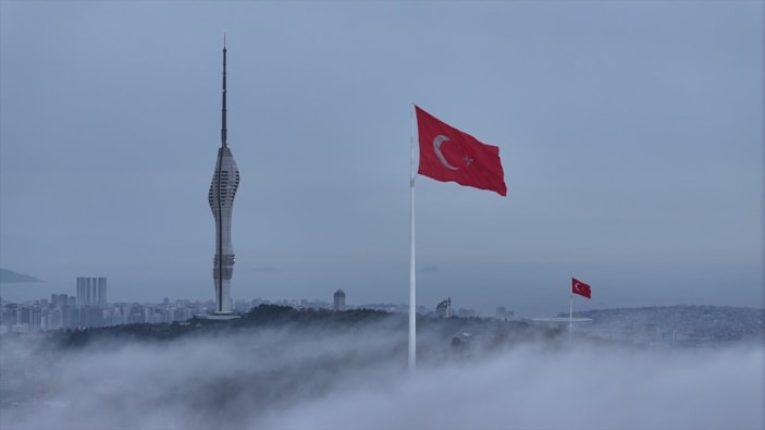 Yine Çamlıca Tepesi ve çevresindeki binaların bir kısmı da sisin altında kaldı.