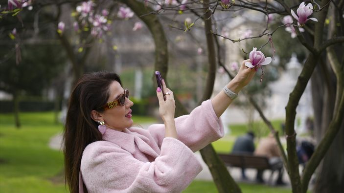İstanbul'un parklarında çiçek açan ağaçlar baharın tüm güzelliklerini sergilemeye başladı. İstanbullular ve turistler fırsat buldukça rengarenk açan çiçeklerin arasında bol bol fotoğraf çektiriyor.