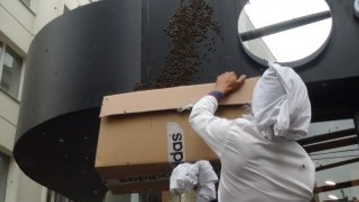 Beyoğlu ilçesi İstiklal Caddesi’nde bulunan bir mağazanın reklam panosunda yuvalanan arılar ortaya çıktı, cadde üzerinde gezen vatandaşlar şok yaşadı. Devreye İranlı bir turist girdi.