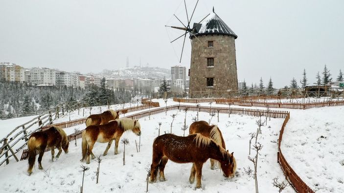 Yağan karın tadını çıkaran atlar, görenleri büyüledi.