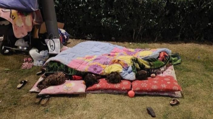 Çaresiz kadın, 4 çocuğuyla birlikte bir yorganın üstünde parkta kalmaya başladı.