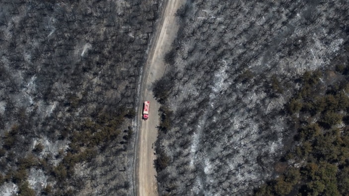 İzmir'de yangından sonra küle dönen orman havadan görüntülendi