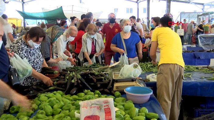 Kısa bir aranın ardından bugün pazar tezgahları yeniden kurulurken, İzmir'de yaşayan vatandaşlar sabahın erken saatlerinde alışveriş yapmak için kuyruk oluşturdu.