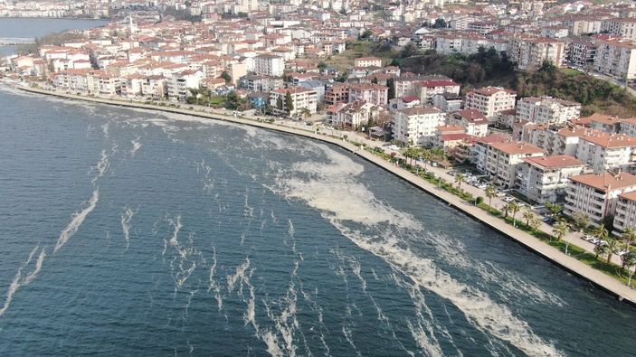 Deniz salyası İzmit Körfezi’ni beyaza bürüdü VİDEO