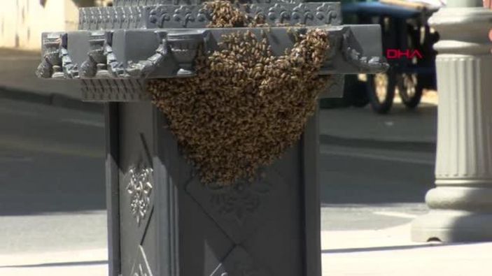 İzmit'te saat direğine yuva yapan arılar, itfaiye ekipleri tarafından kovana alındı.