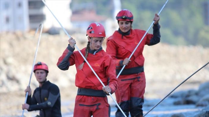 Sel felaketinin yaşandığı Kastamonu Bozkurt'ta görevli Jandarma Arama Kurtarma (JAK) ekibinin kadın personeli, suların çekilmesiyle Ezine Çayı'nda yoğunlaştırılan arama çalışmalarına katıldı.