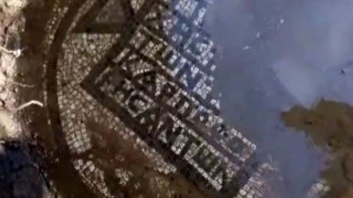 Jandarma tarafından gerçekleştirilen operasyonda, kazı yapılan bölgede zeminde madalyon şekilleri, antik yazıları ve geometrik desenleri bulunan bir mozaik bulundu.