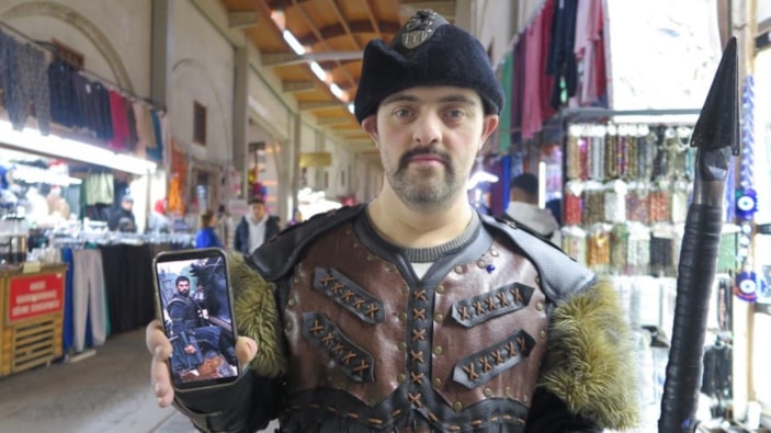 Down sendromlu Emre Kala, üstünden hiç çıkartmadığı geleneksel Türk kıyafetleri ile 500 yıllık Tarihi Kapalı Çarşı'nın sevilen yüzü oldu.