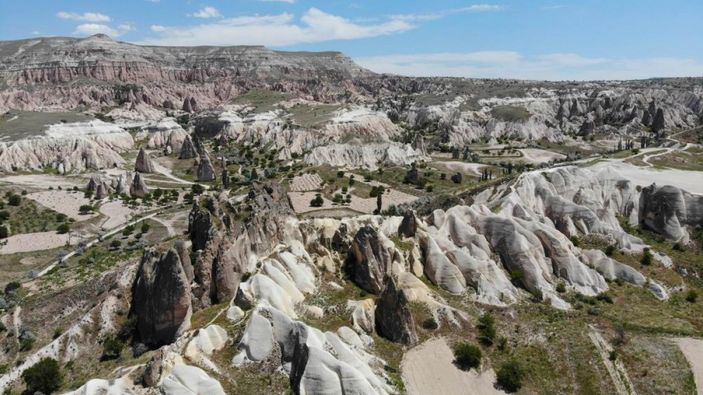 Bölgede bulunan otellerde yüzde 1 oranında doluluk olduğu öğrenilirken, turizmciler 17 Mayıs tarihinden sonra bölgede hareketlenme beklediklerini ifade ettiler. Kapadokya'da yaşanan sessizlik drone ile havadan görüntülendi.