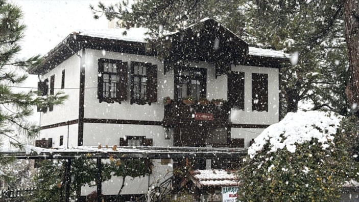 Kış etkisi kendisini gösterince UNESCO Dünya Mirası Listesi'nde yer alan tarihi konaklarıyla ünlü Karabük'ün Safranbolu ilçesi, kar yağışının ardından beyaza büründü.