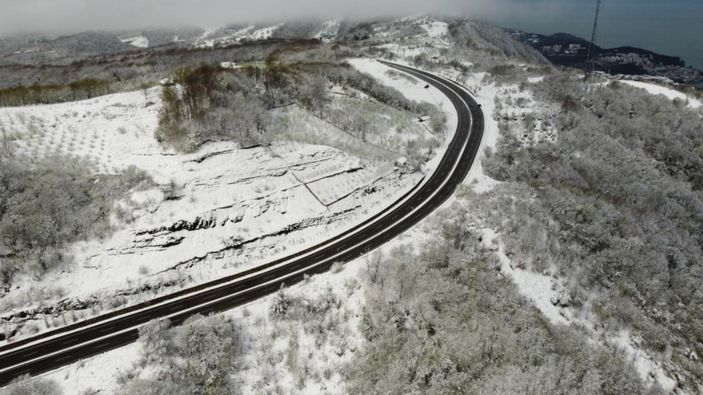 Karadeniz sahil yolu beyaz örtü ile kaplandı
