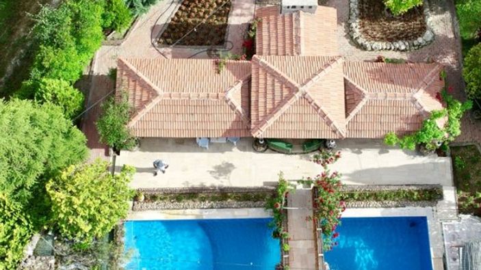 Bahçede suni gölet, havuz, mini şelale ve rengarenk çiçekler de dikkati çekiyor.
