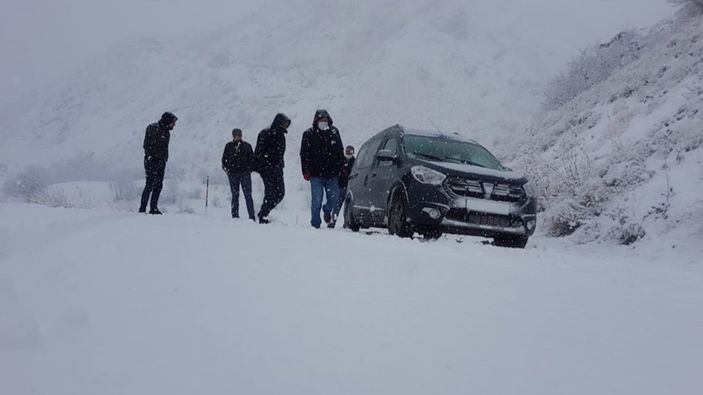 Kar kalınlığının 10 santimetreyi geçtiği ilçede sürücüler ilerleyemedi.