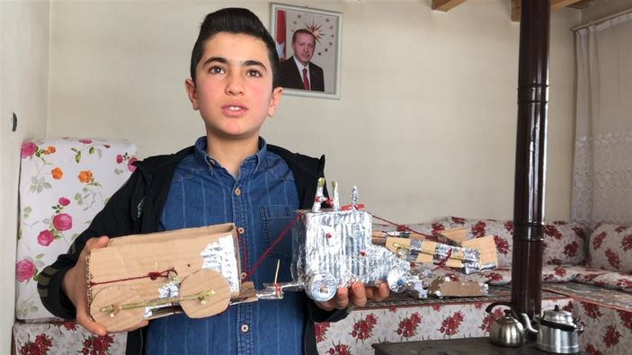 Kars'ın Yalçınlar köyünde yaşayan ve evden çıkamayan lise öğrencisi Berat Yakın da öğretmeninin yönlendirmesiyle evde oyuncak yapmaya başladı.