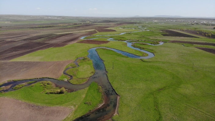 Baharın gelişiyle birlikte yurdun dört bir yanından yemyeşil kareler gelirken, her mevsim bir başka güzelliğe bürünen Arpaçay Menderesi'nde seyrine doyulmaz görüntüler ortaya çıktı.
