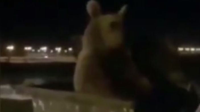 Kars'ta çöp konteynerine giren ayı VİDEO