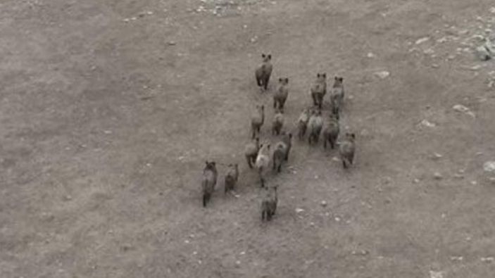Kars'ta domuz sürüsü drone ile görüntülendi