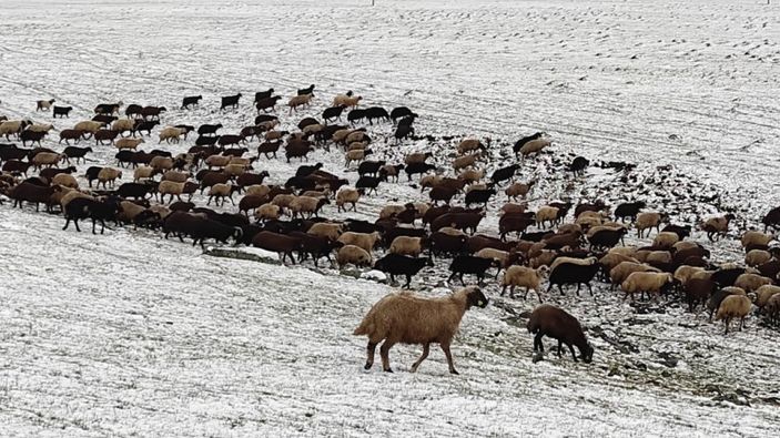 Bölgede koyun sürülerini otlatan çobanlardan Erdal Yokuş, "Sabah yağmurun ardından başlayan kar kısa sürede etkili oldu. Koyunları otlattığımız meralar kar altında kaldı. Böyle devam ederse hayvanları erkenden ahırlara almak zorunda kalacağız. Bu da besicileri perişan eder." diye konuştu.