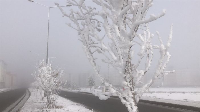 Kentte hava sıcaklığı eksi 20 dereceye kadar düşerken; yollarda, ağaçlarda, banklarda ve bitkilerin üzerinde kırağı oluştu.