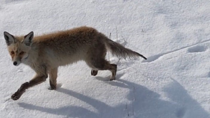 Kars’ta dondurucu soğukların etkili olduğu kırsal alanda, yiyecek arayışındaki bir kızıl tilkinin drone'la yaşadığı ilginç karşılaşma, renkli görüntülere sahne oldu.