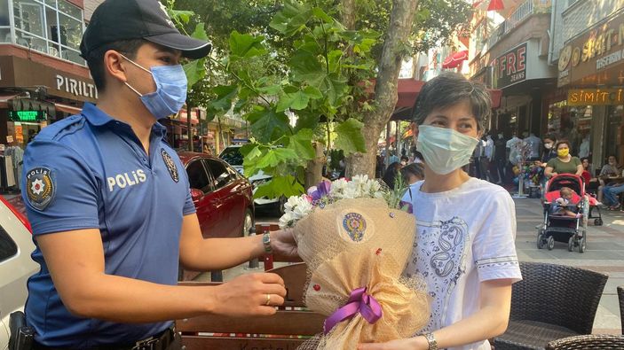 POLİS ÇİÇEK VERDİ