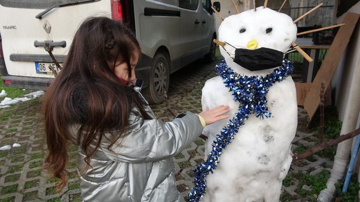 İstanbul Kartal’da geçtiğimiz gün 5 yaşındaki Zeynep Mira Akbaş, yağan kar ile kendisine kardan adam yapmıştı.