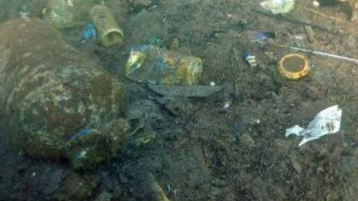 Dalış sırasında alkollü içki şişeleri, maske, plastik atıklar kayda geçti.