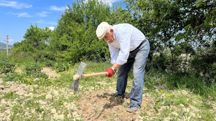 Tarla ve bahçesinde sürekli çalışarak dinç kaldığını söyleyen 80 yaşındaki çiftçi, gençlere de kendisi gibi davranmaları öğütlüyor.