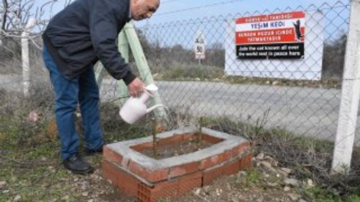 "Kedimiz Yeşim, yağmurda rahatsızlandı ve öldü. Yeşim ile diyaloğum tıpkı insan gibiydi, birbirimizi anlıyorduk. Anısını yaşatmak için yerini yaptırdık, gül diktik. Şimdi etrafını mermer yaptıracağım. Sosyal medya üzerinden sürekli mesaj atıyorlar 'Bu yaz ziyaretine geleceğiz.' diye. Mezarı ziyaret etmek için ABD, Japonya, Kanada, İspanya, Fransa, Azerbaycan, İran ve diğer birçok ülkeden hayvanseverler buraya gelecek."