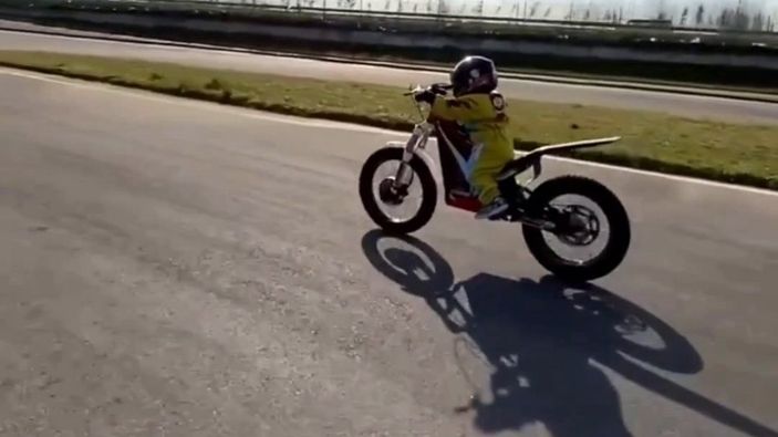 Kenan Sofuoğlu'nun "Still not 2 years old (Henüz iki yaşında değil)" ifadeleri ile paylaştığı videoda, minik Zayn'ın boyundan büyük motosikleti tek başına kullandığı ve babasının ona eşlik ettiği anlar yer aldı.