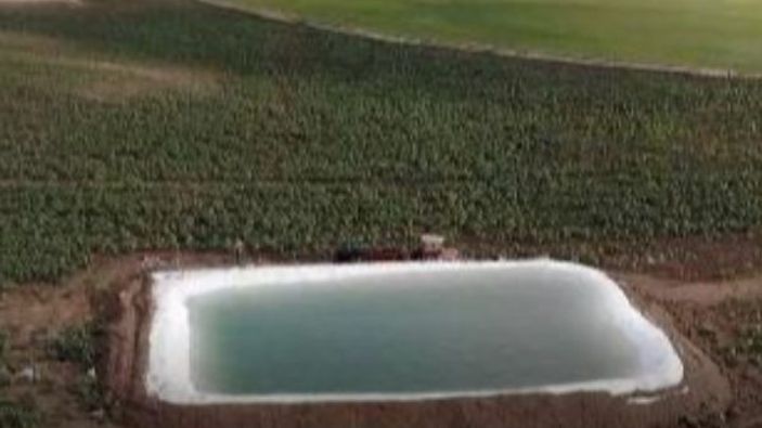 3 kardeşin en büyüğü olan Mikail Çalışkan, kurak araziden daha fazla verim almak için düşünürken bu fikri bulduklarını söyledi. Çalışkan, "Hayvancılık ve çiftçilikle uğraşan 3 kardeşiz. Önceki yıllar arpa, buğday ekiyorduk. Şimdi ise çekirdek ve fasulye ekmek için böyle bir yönteme başvurduk. Bu havuzdan iki tane yaptık. İki havuzu bir haftada tamamladık, bir havuzumuz 1500 metreküp, diğer havuzumuz ise 1800 metreküp su alıyor.