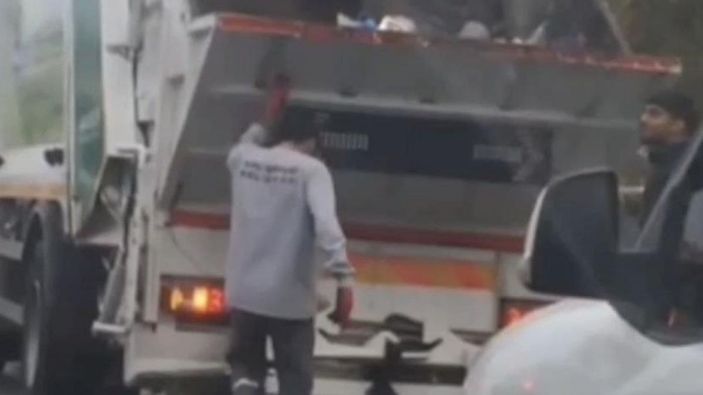 Lüleburgaz ilçesinde temizlik işçilerinin çöp kamyonu arkasında çöp topladığı esnada Roman havası eşliğinde göbek atması ortaya renkli görüntüler çıkardı.