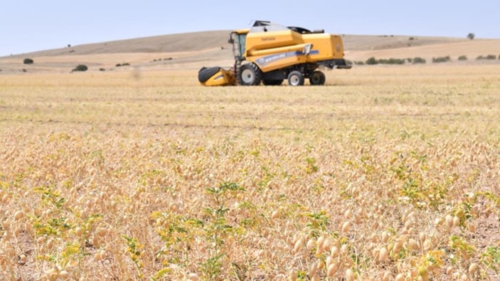 Kırşehir'de Boztepe ilçesine bağlı Çevirme ve Mucur ilçesine bağlı Gümüşkümbet köylerinde yeşil mercimek ve nohut hasadı için çiftçiler çalışmaya başladı.