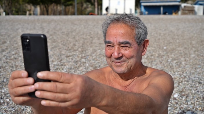 Sahilde güneş keyfi yapan Gurbetçi Rıza Bekkaya, kendisi güneşlenirken, çocuklarının kendilerine Almanya’dan kış fotoğrafı attığını anlattı.