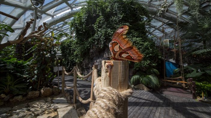 Filipinler'den Tropikal Kelebek Bahçesi'ne getirilen ve kanat uzunluğu 28 santime ulaşan Atlas kelebeği, ziyaretçilerin ilgisini çekiyor.