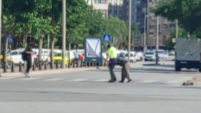 Karşıdan karşıya geçmekte zorlanan ve kavşakta bekleyen 100 yaşındaki kadının polis tarafından yolun karşısına geçirilmesi yürekleri ısıtırken, görüntü Türk Polis Teşkilatı tarafından da paylaşıldı.