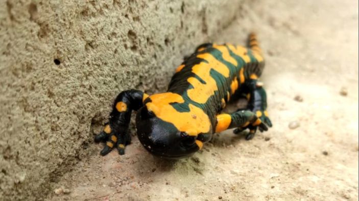 Toros Dağları eteklerindeki bir evin merdivenlerinde, nesli tükenmekte olan semender görüntülendi.
