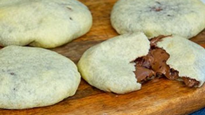 6. Orta kısmına 50-55 gr, 1 yemek kaşığı kakaolu fındık kreması yerleştirin. Bu işlemi kolaylaştırmak için sıkma torbası kullanabilir ya da kullanmadan bir saat buzdolabında bekletebilirsiniz.
