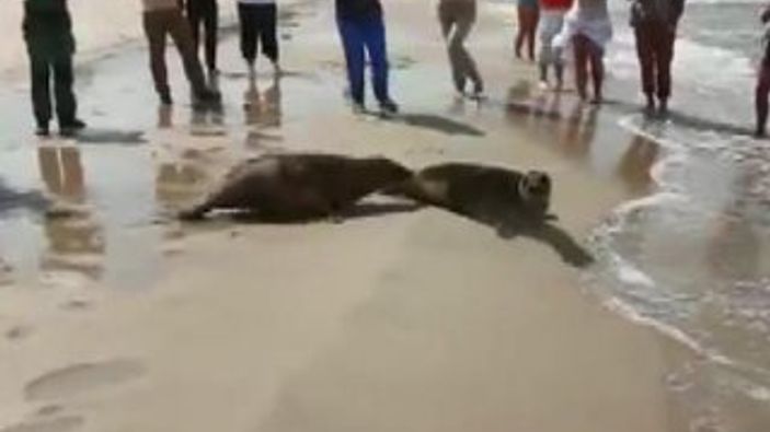 Kurtarılan fok balıkları, denize böyle salındı İZLE
