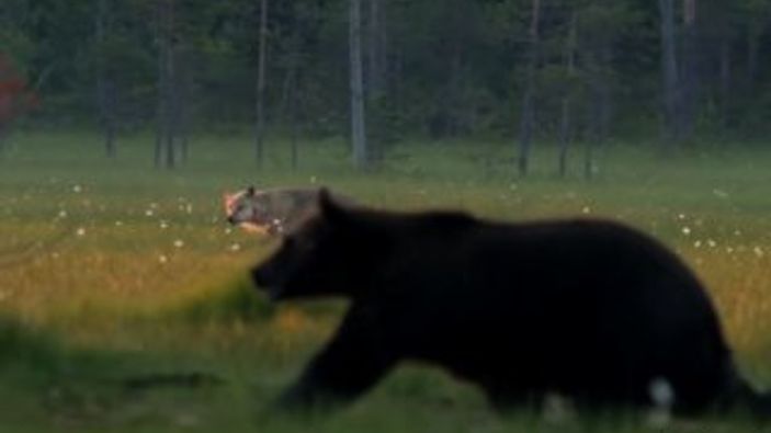 Hayvanlar aleminin karşılaşması zor görünen iki canlısı, kurt ve ayı...