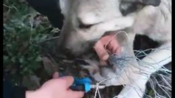 Kütahya'da ayakları tele takılan köpek kurtarıldı VİDEO