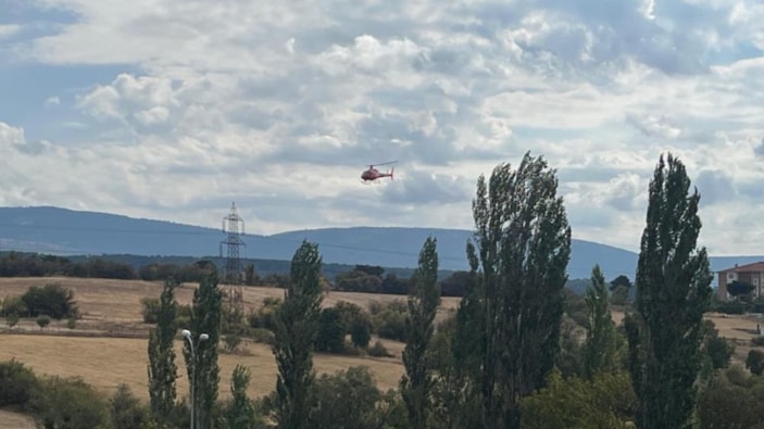 Yüksek gerilim hattı üzerinde uçan helikopteri fark eden vatandaşlar, 112 Acil Çağrı Merkezi'ne "İnemeyen bir helikopter" olduğu yönünde ihbarda bulundu.